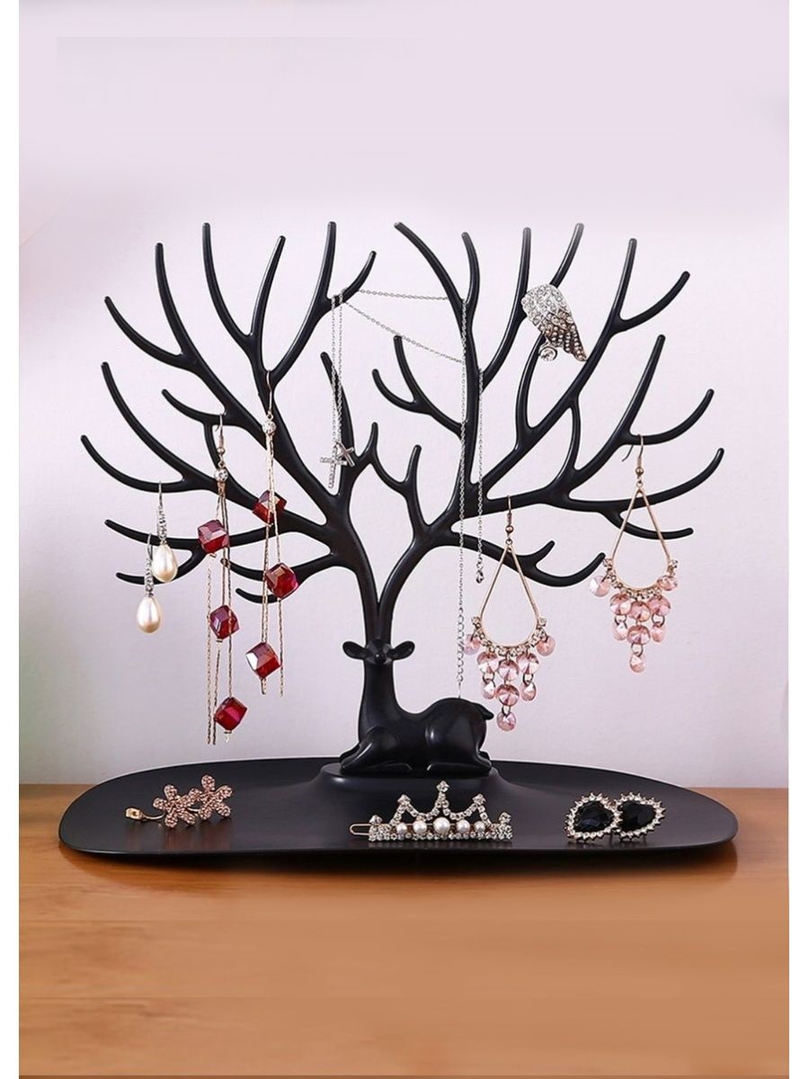 Siyah Geyik Mücevher Organizeri - Geyik Şeklinde Yüzük Küpe Kolye Düzenleyici