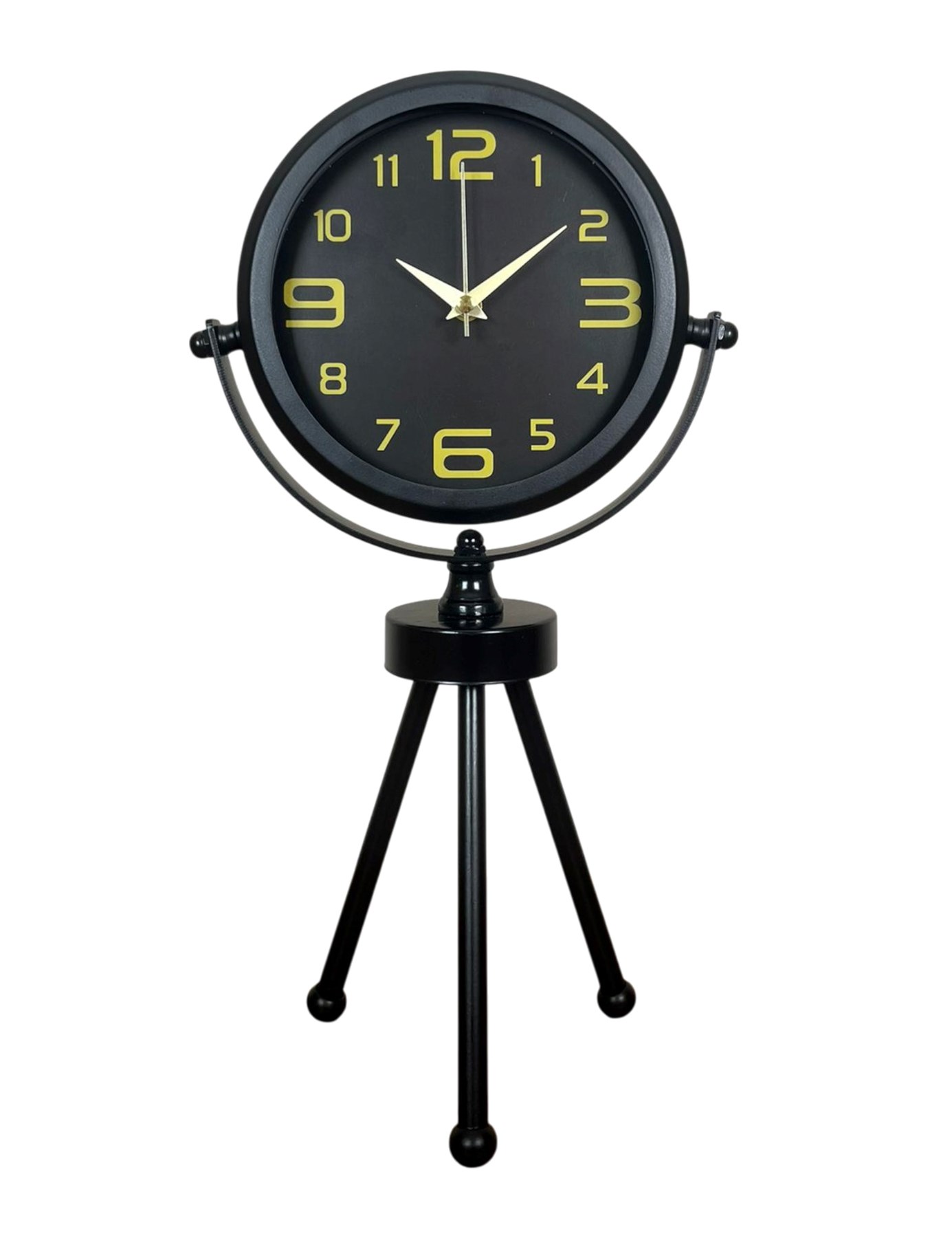 45 x 25 cm ölçülerindeki bu modern siyah üç ayaklı masa saati, minimal tasarımı ve güçlü duruşuyla her ortama şıklık katar. Gerçek cam korumalı kadranı sayesinde net görüntü ve uzun ömürlü kullanım sağlar. Tamamen metal gövdesi ve tripod ayak yapısıyla sağlam, dekoratif ve premium bir görünüm sunar. Sessiz akar saniye mekanizmasıyla ev, ofis ve çalışma alanlarında rahatsızlık vermeden kullanılabilir.
