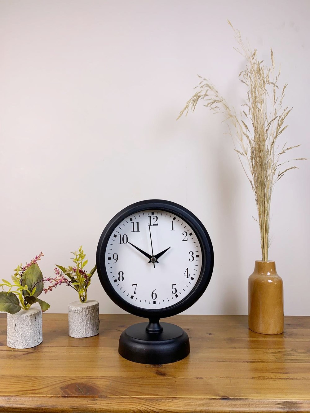 ® Yeni Ürün Siyah Metal Masa Saati 25×20 cm