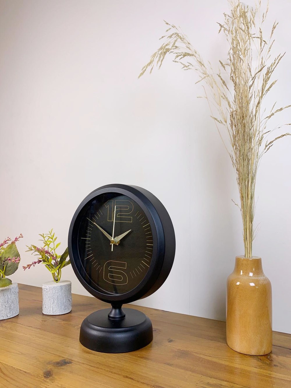 Şık ve modern tasarımıyla dikkat çeken Siyah masa saatimiz, sessiz akar saniye mekanizmasıyla konforlu bir kullanım sunar. Gerçek cam koruma paneli sayesinde uzun ömürlü ve dayanıklıdır. Estetik görünümüyle hem ev hem de iş yerleri için ideal bir dekoratif üründür.