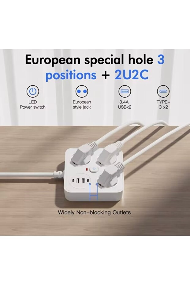Sonx AKIM KORUMALI Avrupa Soket Kartı, Type-C ve USB bağlantı seçenekleri ile ev ve ofis kullanımında pratik çözümler sunar. 2 metre uzunluğundaki kablosu sayesinde cihazlarınızı rahatça bağlayabilir, enerji ve veri aktarımını güvenli bir şekilde gerçekleştirebilirsiniz.