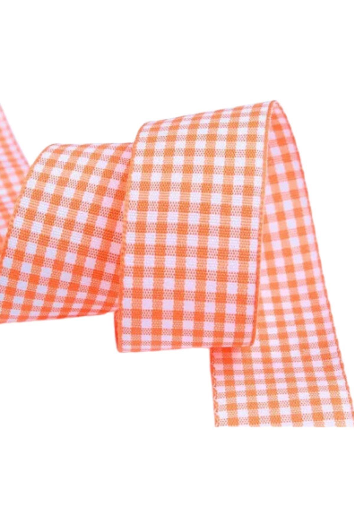 Biyomak® Tafta Ekoseli Kurdele 25 mm Turuncu 5 Metre