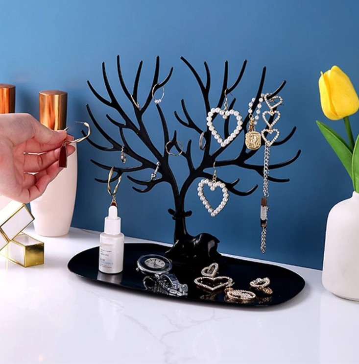 Takı Kolye Teşhir Stand Küpe Kolye Boynuz Hediye Ağacı Siyah