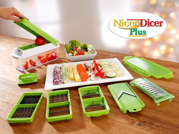 Muhtemelen siz de mutfakta uzun saatler geçirmekten bıkmışsınızdır. Dilimlemekten, doğramaktan ve kesmekten sıkıldınız mı? Mutfağınız, nereye kaldıracağınızı bilmediğiniz bir yığın cihaz ve aparatla dolup taşıyor mu? Tüm bunları yapan tek bir alet olsa ne iyi olurdu, değil mi? Öyle harika bir alet var! Adı Nicer Dicer Plus. Nicer Dicer Plus, piyasada bulunan ürünler içinde, hayatı en çok kolaylaştıran küçük ev aletidir. Nicer Dicer Plus?un olağanüstü keskinlikteki bıçakları sayesinde, her tip meyve ve sebzeyi, kusursuz bir şekilde kesebilirsiniz. Mutfağınızda hızlı ve basit bir yemek hazırlama ünitesi istiyorsanız, sizin ihtiyacınız Nicer Dicer Plus demektir.