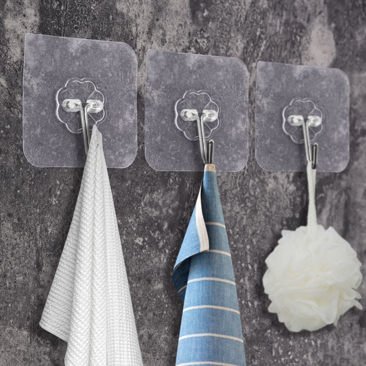Kendinden yapışkanlı askı kancası yüksek kaliteli paslanmaz çelikten yapılmıştır, su geçirmezdir, temizlenmesi kolaydır ve uzun ömürlüdür. Aksesuarları sıkıca yerine sabitleyebilirsiniz.