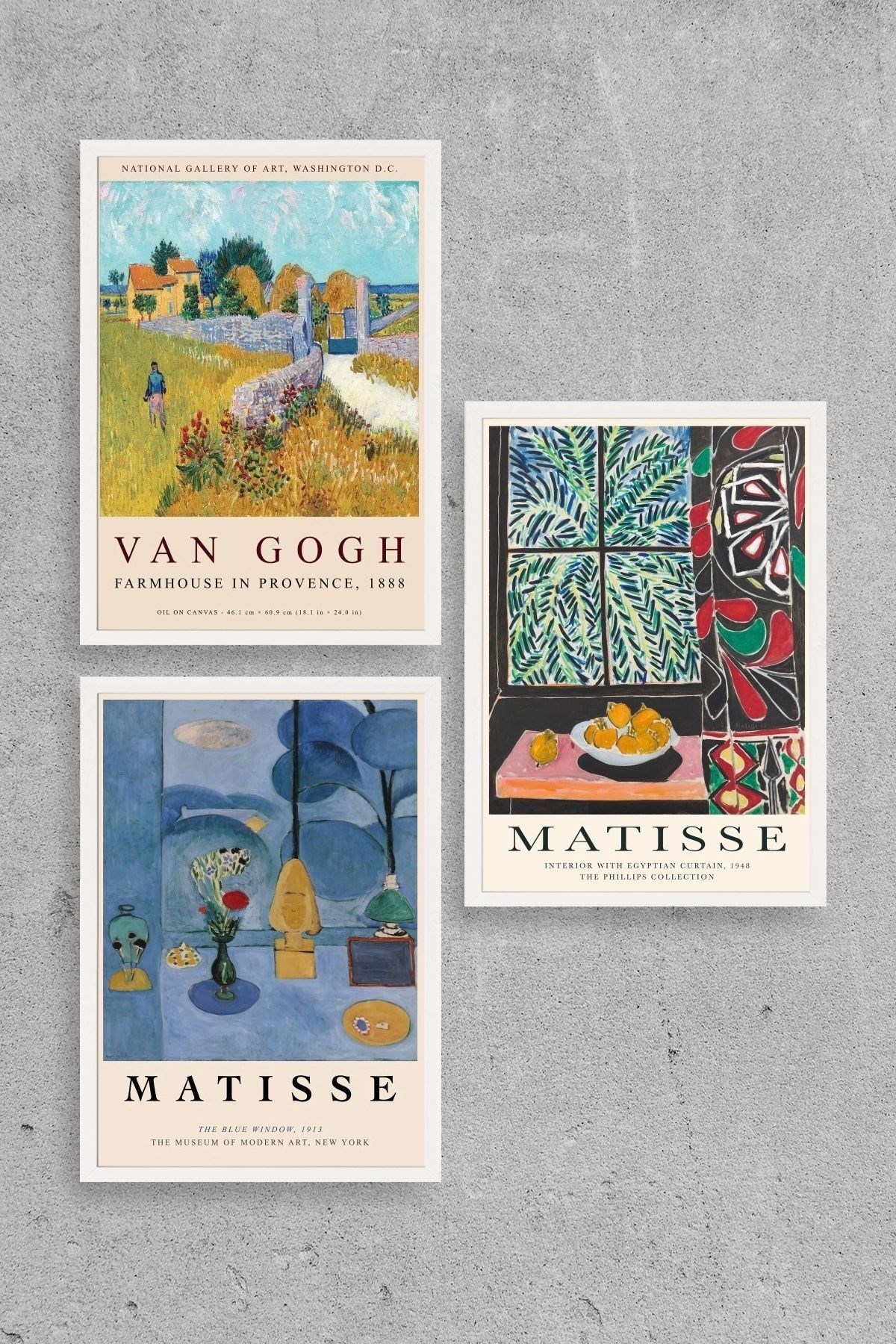 Biyomak® Ünlü Tablolar Üçlü Ahşap Çerçeveli Tablo