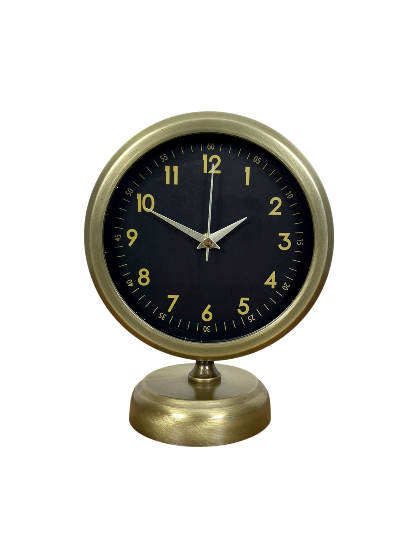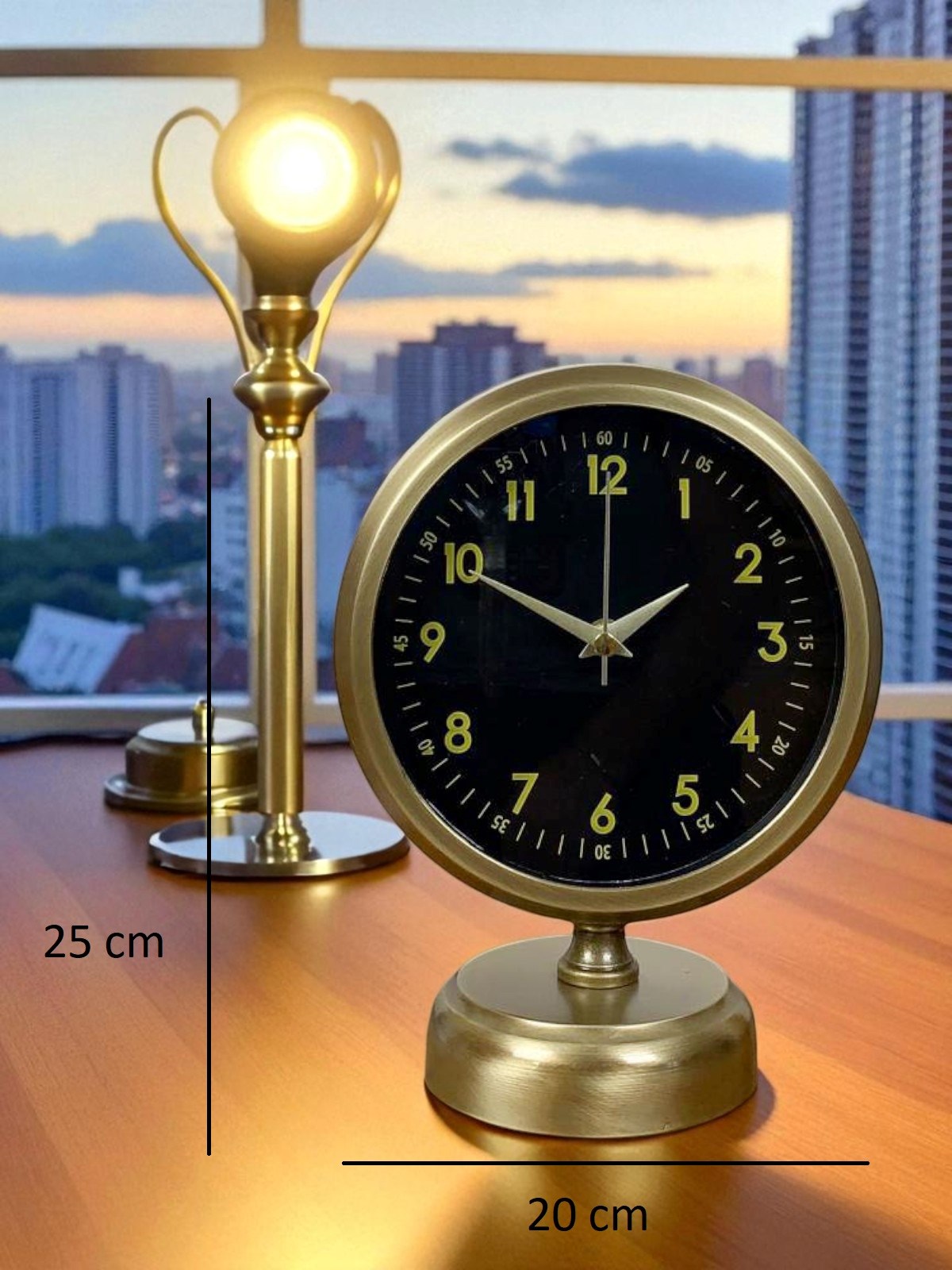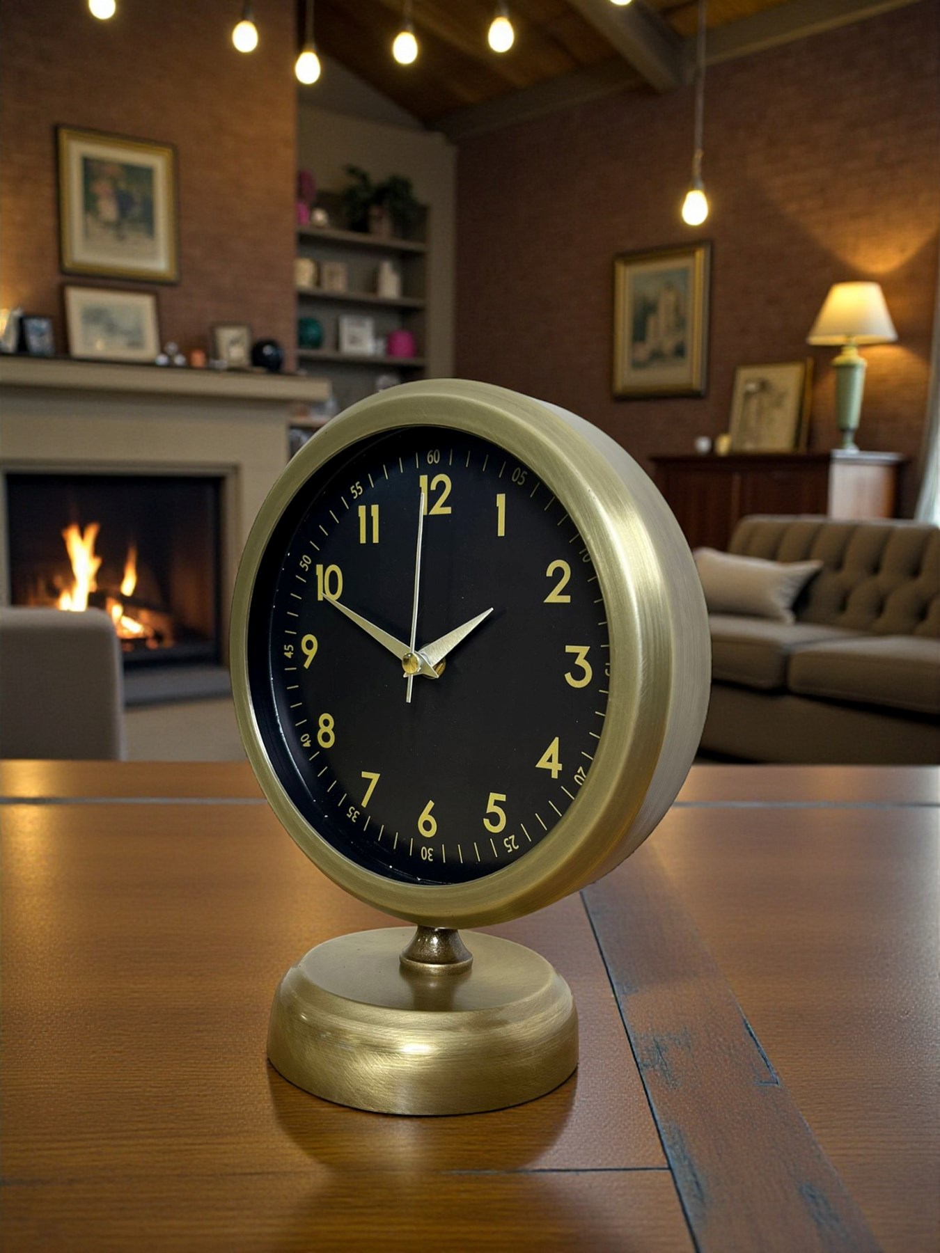 Klasik tasarım anlayışını modern detaylarla birleştiren bu eskitme masa saati, bulunduğu ortama güçlü bir karakter ve şık bir duruş kazandırır. Siyah kadranı, gold tonlu rakamları ve eskitme metal gövdesiyle hem vintage hem de lüks bir görünüm sunar. Zamansız tasarımı sayesinde yıllar boyunca modasını kaybetmeden kullanılabilir.