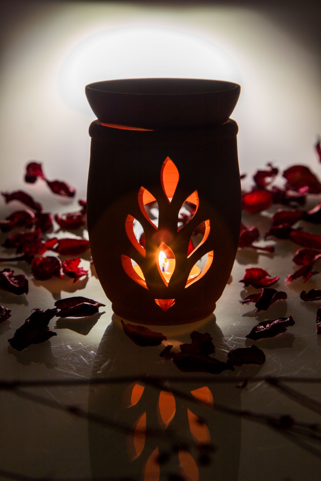 Aromaterapi yağlarıyla kullanılır, altına mum konur, üstüne isteğinize göre aromaterapi yağları,adaçayı veya tütsü koyabilirsiniz üst kısım kasesidir .