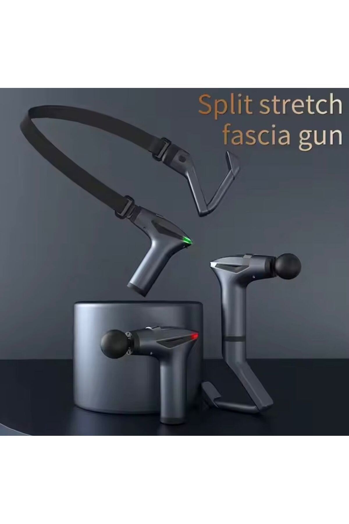 Bu yenilikçi masaj cihazı, noktadan yüzeye kapsamlı bir rahatlama sunar.; Geleneksel masaj tabancası, esnek fasiyal bant ve uzatılabilir fasiyal tabanca modları sayesinde vücudunuzun her yerine kolayca ulaşır ve derinlemesine masaj sağlar.; Kas gerginliğini gidermek ve esnekliği artırmak için idealdir.; ; Detaylı Açıklama: "Noktadan Yüzeye" felsefesiyle tasarlanmış bu çok yönlü masaj sistemi ile kaslarınızdaki gerilimi ve ağrıları hedefleyin.; Üç farklı kullanım modu sayesinde benzersiz bir masaj deneyimi yaşayın: * Masaj Tabancası: Belirli kas gruplarına yoğun ve titreşimli masaj uygulayarak derinlemesine rahatlama sağlar.; Kolayca taşınabilir ve ergonomik tasarımıyla elinize tam oturur.; * Fasiyal Bant: Bel çevresine takılarak veya vücudun diğer bölgelerinde kullanılarak, geniş yüzeylerde eşit basınç dağılımı ile kasları rahatlatır ve esnekliği artırır.; Bu mod, özellikle büyük kas gruplarının genel gevşemesi için idealdir.; * Fasiya Tabancası Uzatma Aparatı: Ulaşılması zor sırt ve omuz bölgeleri gibi alanlara rahatça erişmenizi sağlayan uzun saplı bir tasarıma sahiptir.; Bu uzatma aparatı sayesinde kendi kendinize etkili bir masaj yapabilir, kas düğümlerini hedefleyebilir ve kan akışını artırabilirsiniz.; Antrenman sonrası toparlanmayı hızlandırmak, günlük stresi azaltmak veya sadece kaslarınızı rahatlatmak için tasarlanan bu ürün, kişisel masaj ihtiyaçlarınız için mükemmel bir çözümdür.; Dayanıklı malzemelerden üretilmiş olup, uzun ömürlü bir kullanım vaat eder.; Umarım bu seçenekler işinize yarar!